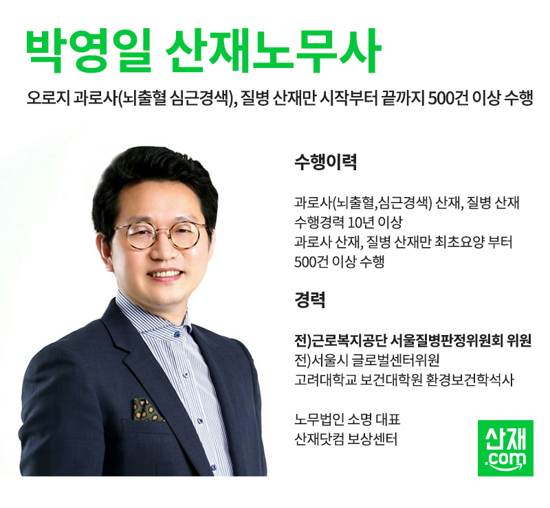 안녕하세요. 과로사(심근경색, 뇌출혈) 산재 전문 박영일 노무사입니다.